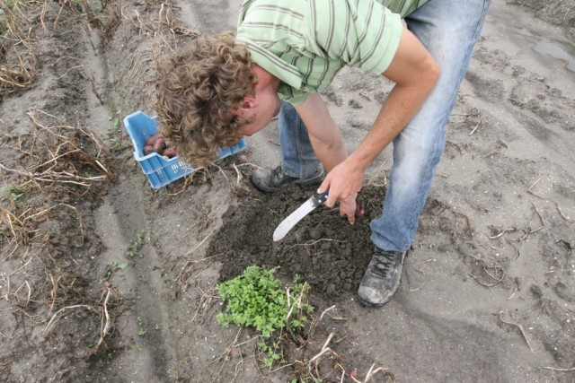 Krispijn illustrates how organic farming methods keeps the water below and around their fields healthy:“Generally speaking we receive ample rainfall in this part of The Netherlands,- so water supply isn’t really an issue. In addition, due to the sandy soil and the way we manage it, we have created an effective drainage system, meaning that our fields won’t flood. One of the biggest headaches for the local water authorities is that due to conventional farming practices, the rain run-off is often polluted with artificial fertilizers and pesticides polluting the whole water system. Since we do not use these harmful products we are helping to keep the water below and around our fields healthy. There is no pollution and the clayey soil and green cover prevent washing out of nutrients. Because the soil is so healthy, it therefore has excellent water holding properties”.