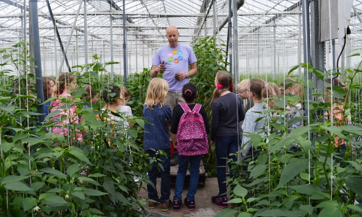 The horses that walk in the grassland outside the greenhouse are included in the ‘cycle’ as well. Every day we collect a basket with ‘waste’ peppers and cucumbers and we’ll feed the horses with it. We then collect the horse manure, and we sprinkle this among the plant rows for our crops. This will stimulate the crops, and completes the cycle’’.