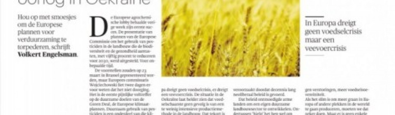 Afgelopen dinsdag publiceerde dagblad Trouw een opiniestuk van Volkert Engelsman, CEO van Eosta. Op Twitter is het artikel inmiddels al 150 x geretweet. Engelsman betoogt dat de pesticide-, kunstmest- en veevoerlobby niet onze toekomst mag bepalen. Onder druk van de agrochemische lobby zette Brussel vorige week namelijk plannen om het pesticidengebruik in de landbouw te halveren in de ijskast. De oorlog in de Oekraïne vraagt weliswaar om maatregelen om de voedselvoorziening international te waarborgen, maar er is geen enkele reden om daarvoor de Green Deal en het Farm to Fork beleid te torpederen. Integendeel, de huidige crisis laat juist zien hoe hard we die verduurzaming nodig hebben.